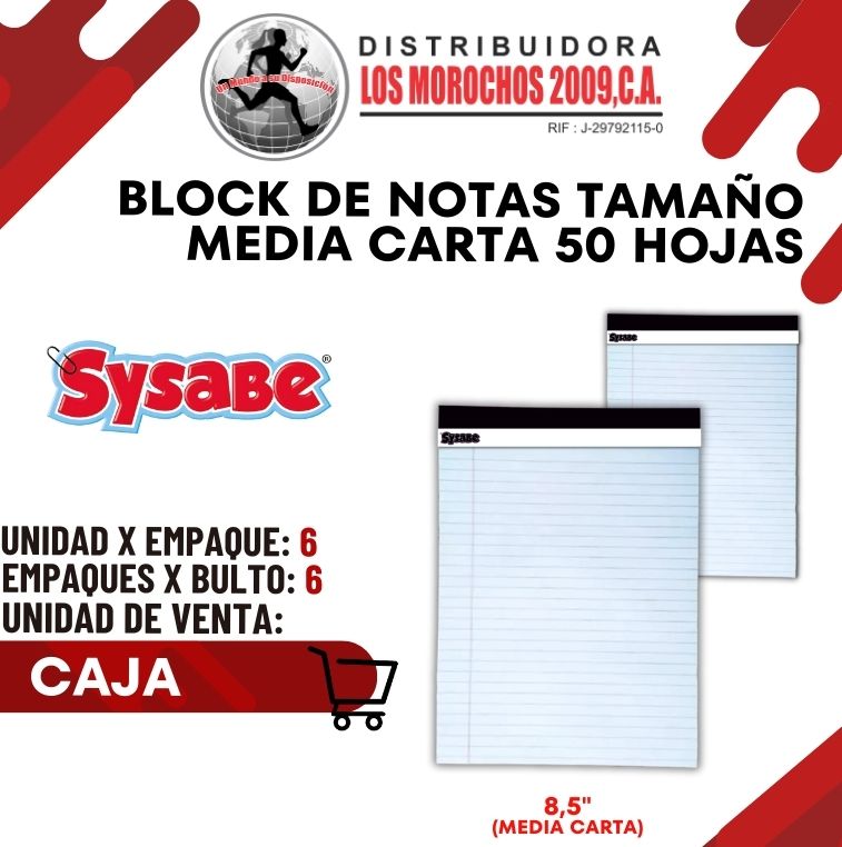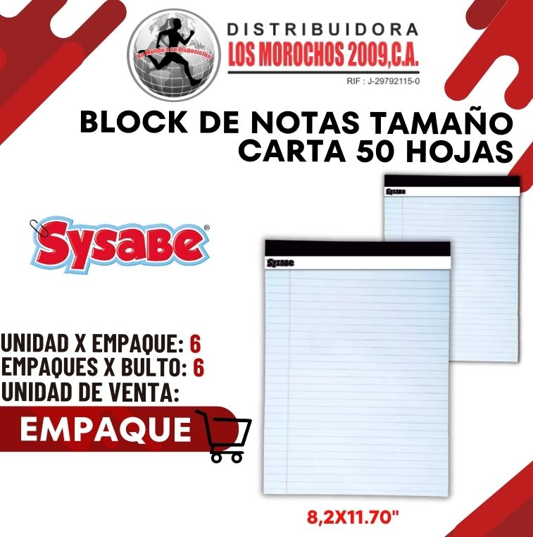 BLOCK NOTAS CARTA 50 HOJAS 6X1